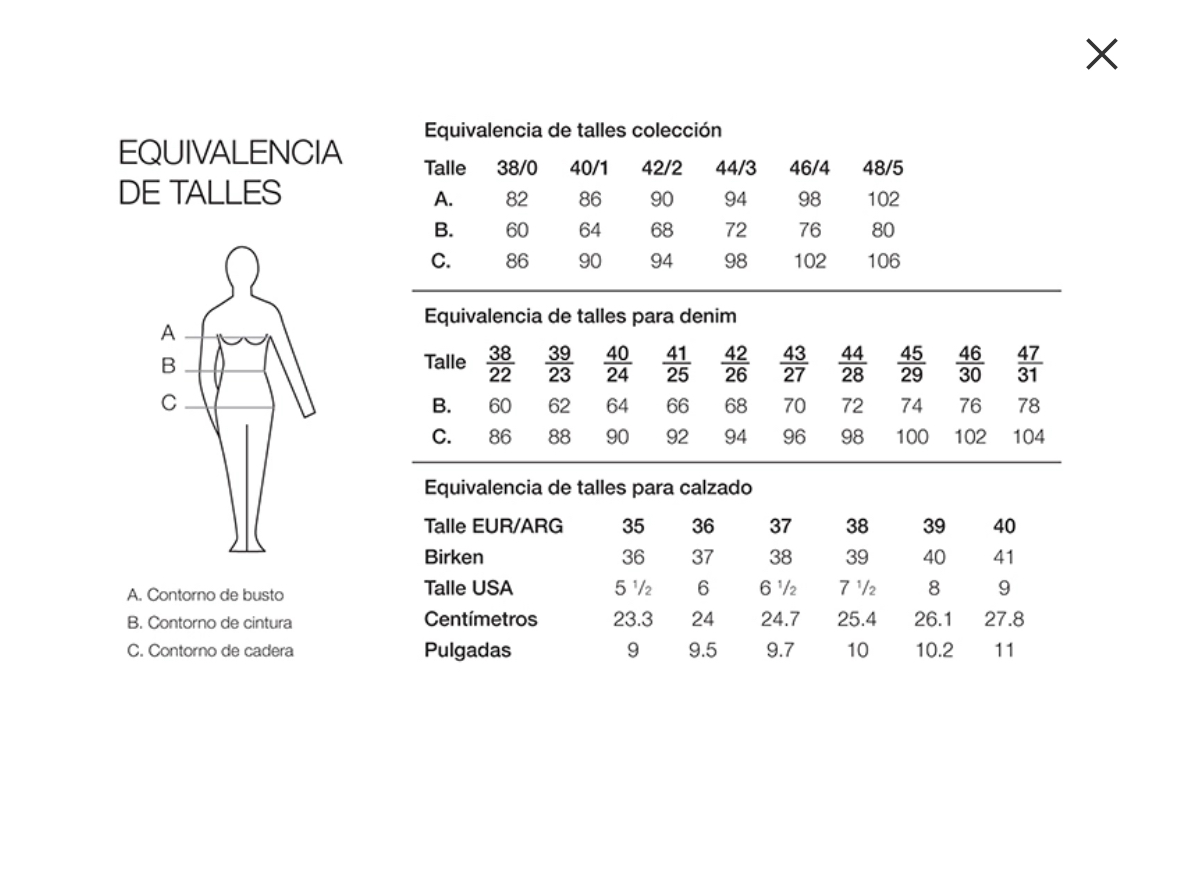 Referencia modelo Sasha: Altura 1,72 Taller: 1
